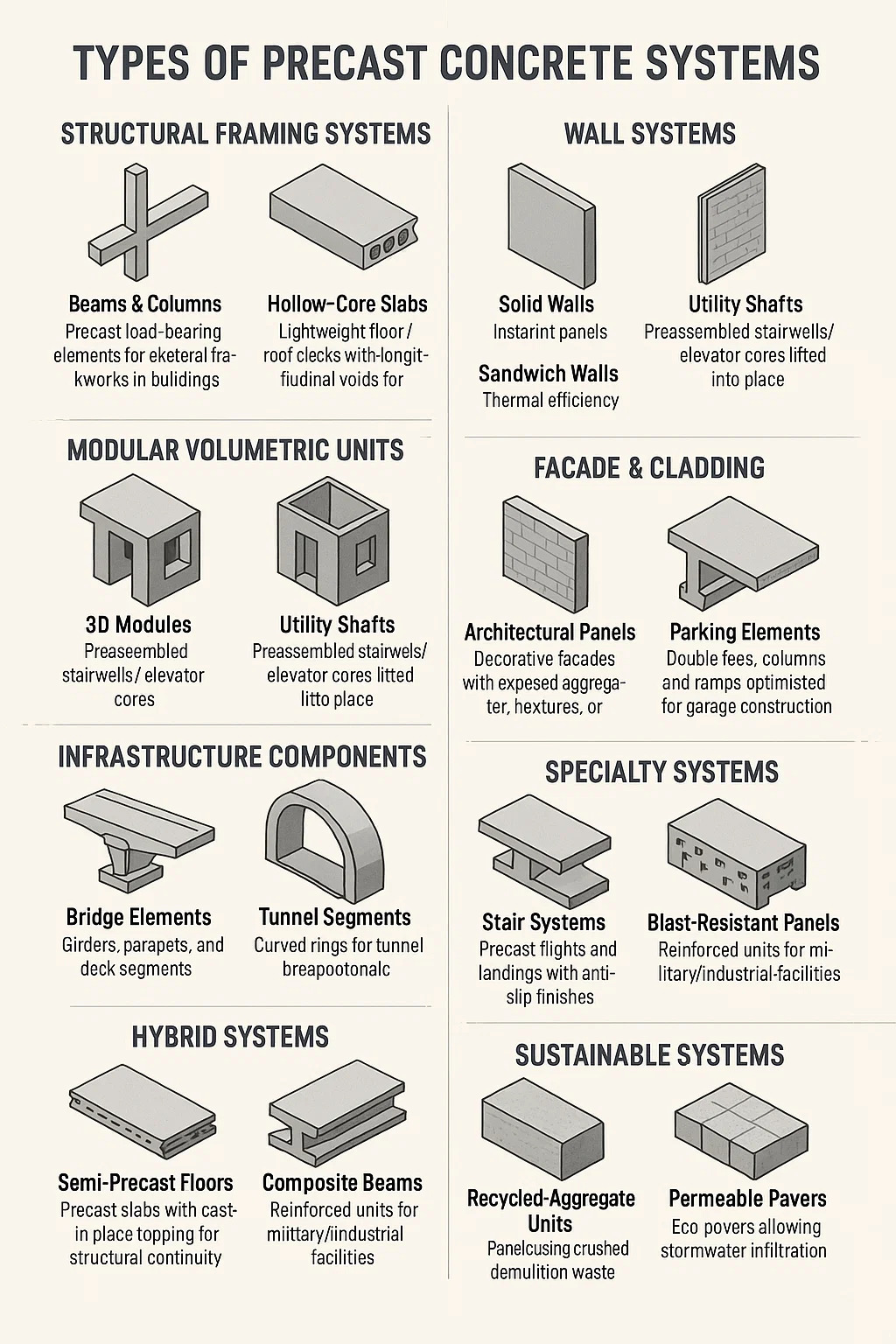 Panel Tilt-Up: Dinding besar dilemparkan di tapak secara mendatar, condong secara menegak ke kedudukan.