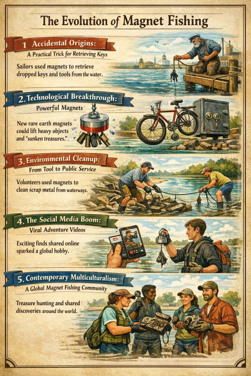Komuniti Global: Kini, terdapat komuniti yang berdedikasi di seluruh dunia di mana orang ramai berkongsi petua peralatan dan penemuan terkini mereka, mengubah memancing magnet daripada alat khusus kepada pautan yang menghubungkan manusia dengan alam semula jadi dan sejarah.
